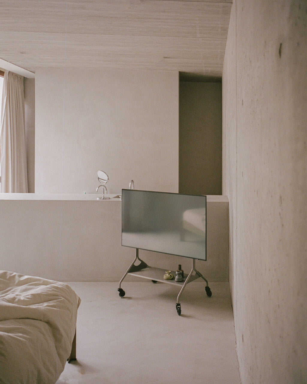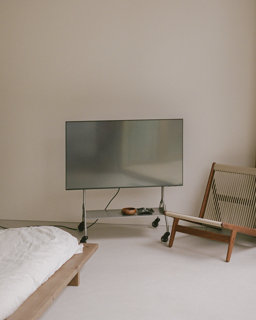 Moon RAW revisite l’iconique support TV Pedestal dans une version inédite, imaginée en collaboration avec industrialkonzept. Cette édition limitée reprend la silhouette sculpturale du Moon Rollin’ original, désormais façonnée en acier brut poli, protégé par un vernis transparent. Chaque surface laisse apparaître les nuances naturelles du métal, entre reflets doux et jeux de texture subtils. Pour la première fois, Moon RAW s’équipe de roulettes façon patins à roulettes — audacieuses, pratiques, et clin d’œil assumé à l’univers industriel. Ajoutez à cela l’étagère en acier incluse, et vous obtenez une pièce à la fois spectaculaire et ultra fonctionnelle. Moon RAW est produit en quantité très limitée.