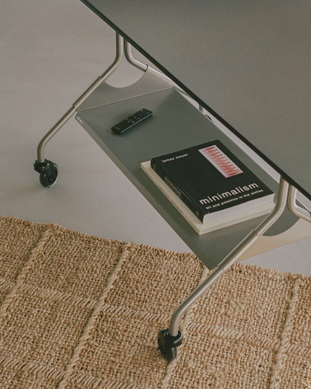Moon RAW roule sur des roulettes industrielles ultra-robustes, pensées pour un déplacement fluide et une stabilité à toute épreuve.