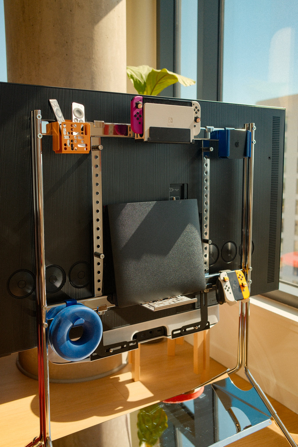 Notre Soundbar Bracket Set peut être monté sur toutes nos TV-standers, à l’exception du modèle Bloom.